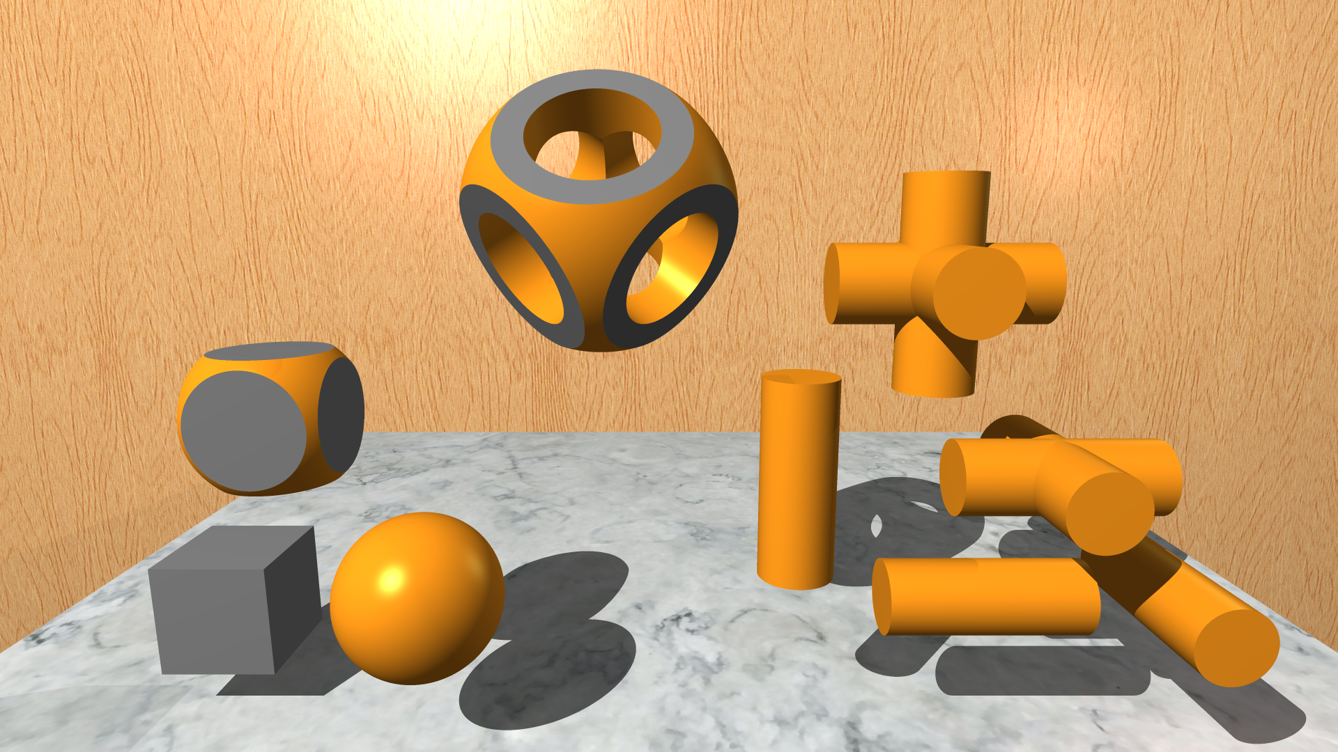 Constructive solid geometry was implemented, which allows primitives to be combined using the following 3 boolean operations: union, intersection, and difference.